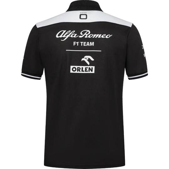 Official Alfa Romeo F1 Team ORLEN Original Teamwear Polo Shirt for men. It is is part of the teamwear collection, which is also worn by the drivers. The Polo shirt design consists of the three main colors of the racing team: red, white and black. It features team and sponsor logos and has a small chest pocket. Material: 100% Recycled Polyester - Official licensed product - Color: Black - Team and sponsor logos - Small chest pocket - Regular fit - Machine washable