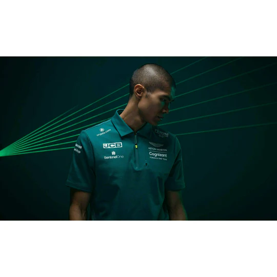 The latest Aston Martin Aramco Cognizant Formula One Official Team Polo – as worn by drivers Sebastian Vettel and Lance Stroll – embodies our mission with a fresh take on our striking attire. Manufactured from a high-end 4-way stretch breathable pique fabric and an innovative combination of cotton, polyester and elastane. The wearer will also experience added comfort with the inclusion of de-bossed moisture function side panels. Be part of the team with the Official Team Polo Mesh inner cuff detail for comfort De-bossed moisture function side panels Concealed laser cut chest pit pass pocket with welded closure De-bossed tape to shoulders & back neck
