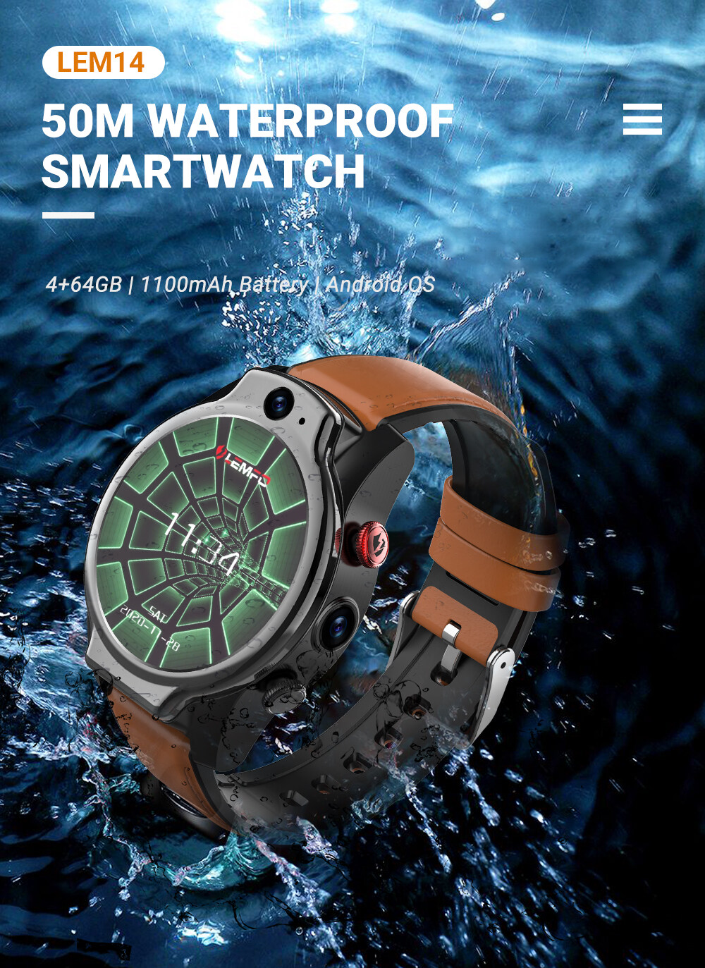 * Waterproof 5ATM: Support the highest IP68 waterproof, LEM14 is applicable in almost all water condition in daily life and in sports, such as splashes rain or snow, swimming and snorkeling, etc