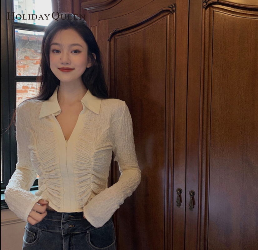 HolidayQueen Fall Women's Thin V-neck Design Top Shirt S M L XL Free Shipping Women's clothingHQP0589