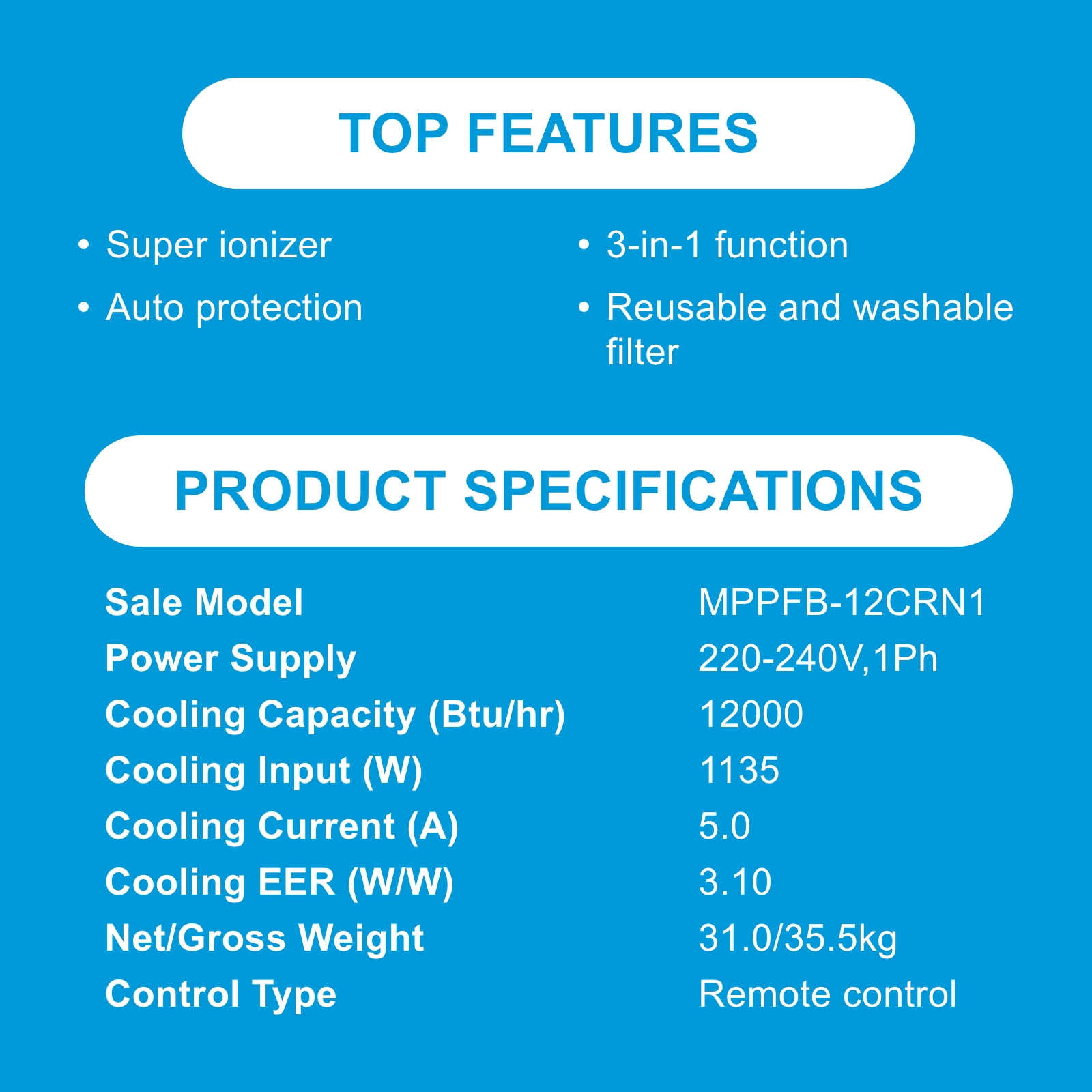 [Bulky] Midea MPPFB-12CRN1 Portable Air Conditioner, 12000BTU