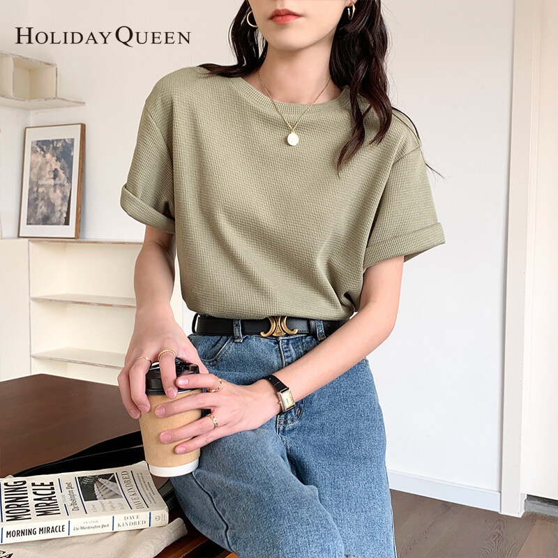 HolidayQueen Matcha Green Short-sleeved T-shirt Women's Korean Version 2022 Summer New Waffle Loose All-match Top S M L XL Free Shipping HQ1261