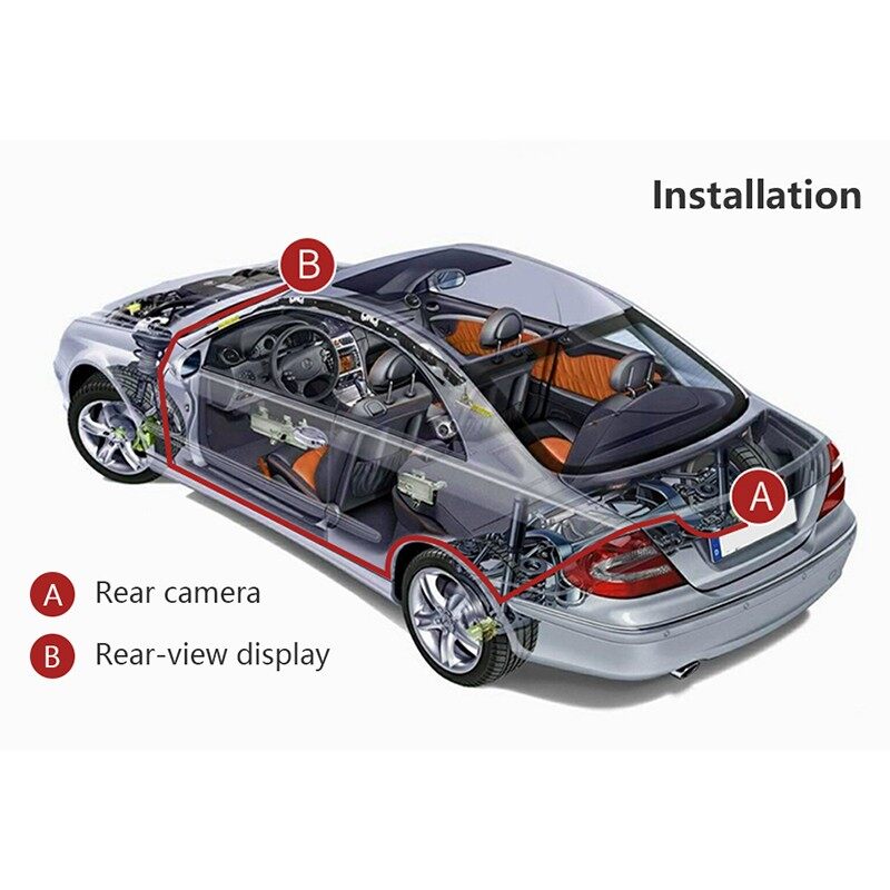 • 2. It can be connected to the reversing system. When reversing, the display will automatically wake up with a signal, and the rear image of the display will be displayed. After the reversing is completed, it will automatically turn off, which is more user-friendly.