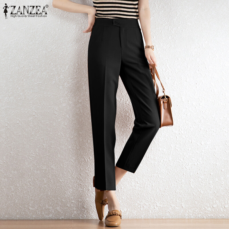 ZANZEA Korean Style Women Office Ladies Pants Casual Elastic Waist Straight Trousers Slacks #10