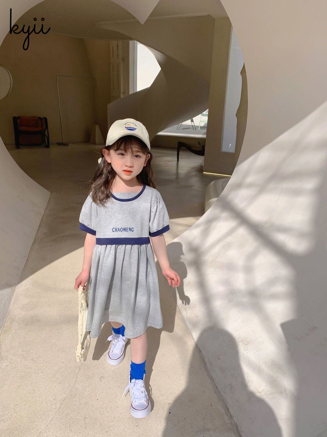 KYII Kids Girls Summer Round-neck Dress Casual Loose Dress kyii0064