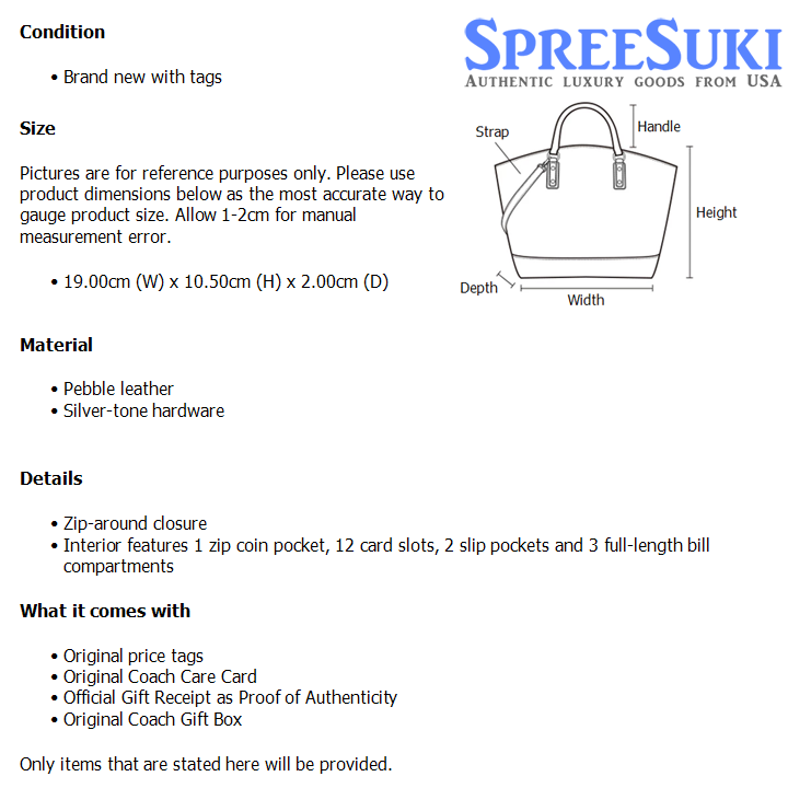 All our products are 100% authentic and purchased from Coach stores in USA. We are a reputable registered business in Singapore and it is illegal to sell counterfeit goods in Singapore. This product also comes with a gift receipt which is printed by the Coach store that we purchased the item from. It states the item that we purchased and the Coach store that it was purchased from, proving the authenticity of the item. Buy with confidence.