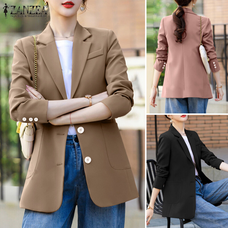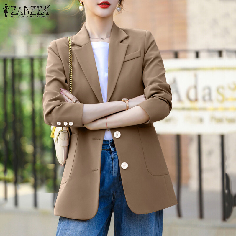 ZANZEA Women Formal Business Single-Breasted Suits Office Work Turn-Down-Collar Blazer #11