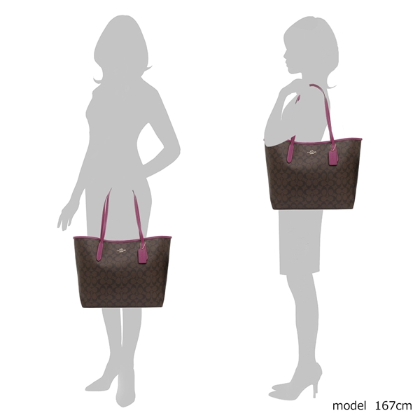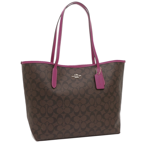 Coach Handbag Tote Shoulder Bag City Tote In Signature Canvas Brown Dark Magenta # 5696